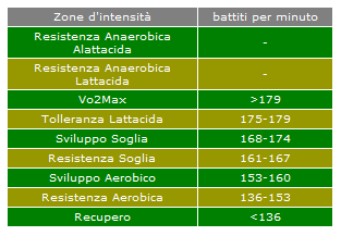 Facendo un esempio pratico, un individuo con una SA di 170 avrà le seguenti zone di intensità: